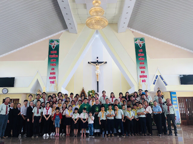 Được sự chấp thuận của Cha FX. Nguyễn Thanh Lâm chánh xứ giáo xứ Quảng Nghệ Bà Rịa , đoàn HTDC giáo xứ đã tổ chức thánh lễ mừng kính thánh Gioan Don Bosco quan thầy của đoàn vào 10g chúa nhật 31/1/2021 đồng thời nhân dịp này cũng làm lễ tuyên hứa cho 2 huynh trưởng và trao khăn quàng cho 30 em HTDC của giáo xứ Hữu Phước, giáo xứ Đức Mỹ , giáo xứ Phước Ân mới gia nhập đoàn .